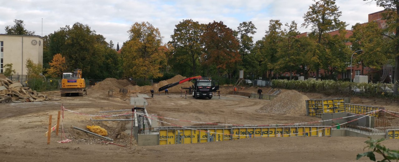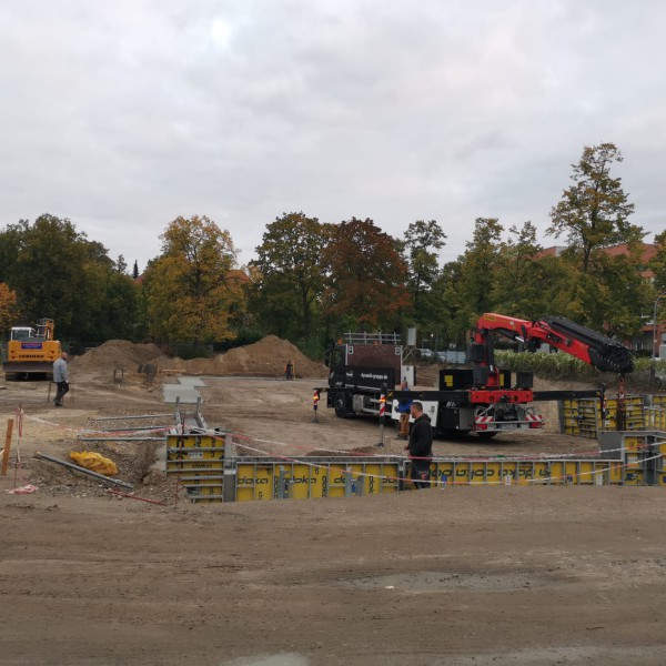 Natürlich ist es für das ungeübte Auge noch schwer, sich bei den paar Betonwänden das fertige Gebäude vorzustellen, aber immerhin fließt der Beton nun.