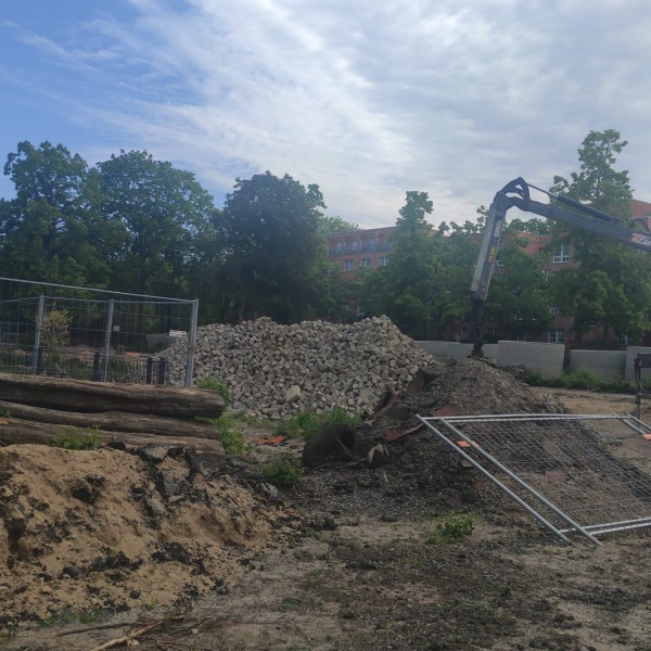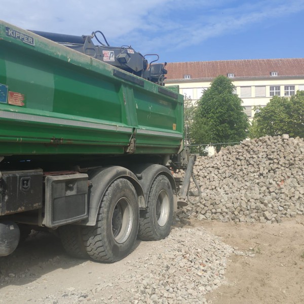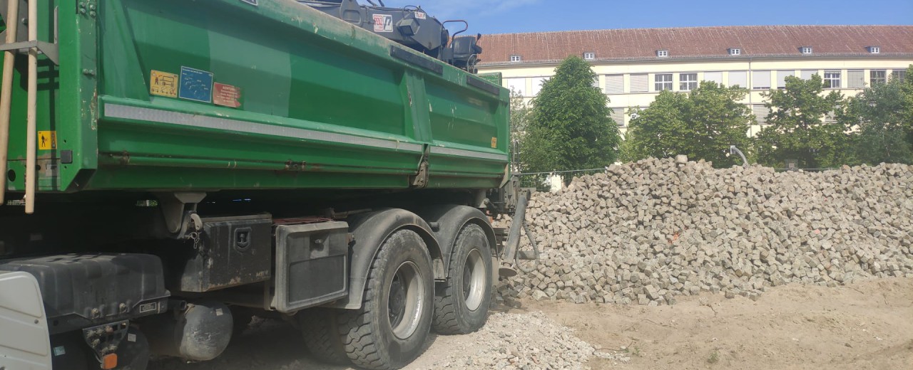 Stein um Stein wurden heute die entsiegelten, kleinen Pflastersteine abtransportiert. Sie werden im Bauamt eingelagert bis über eine weitere Verwendung entschieden ist.