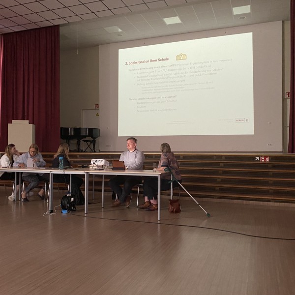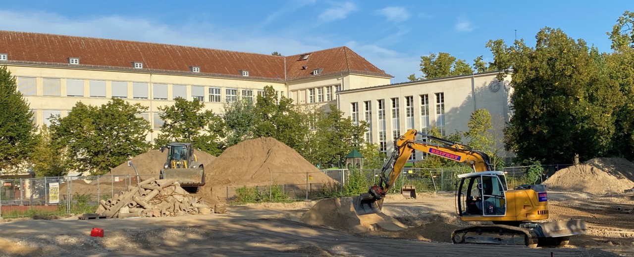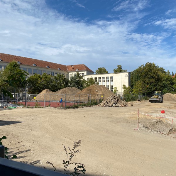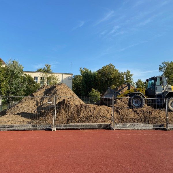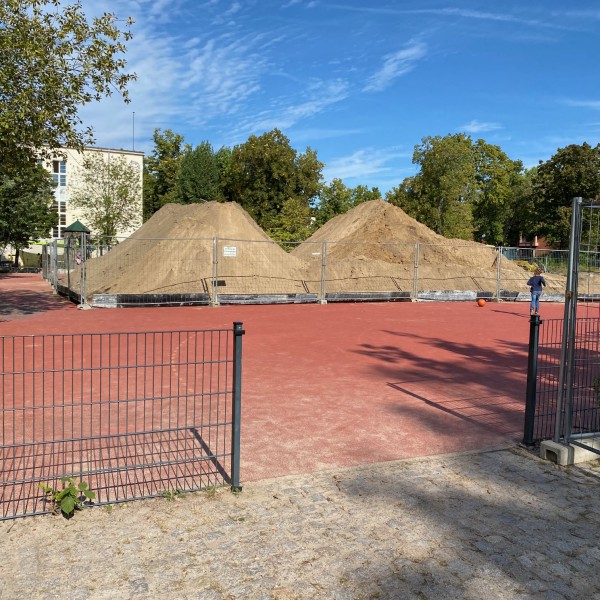 In dieser Woche hatten wir eine Sitzung zum hoMEB, der auch Herr Plarrè (Schulamt: Infrastruktur- u. Bauangelegenheiten) und Frau Paul-Beckmann (Schulamt: Schulentwicklungsplanung) beiwohnten. Beide sind für die Planung und Umsetzung der Baumaßen mitverantwortlich. Sie standen in 1,5 Stunden dem Kollegium, den Eltern und Schüler*innen zur Seite, um Fragen zu beantworten und zu informieren. Selbstverständlich kam auch der riesige Sandberg auf dem Schulhof zur Sprache, der derzeit fast den kompletten Fußballplatz einnimmt. Dieser sei wohl notwendig geworden, weil vormals entnommene Bodenproben, die alle in Ordnung waren, nach dem Verlegen der Sickerschächte, erneut abgenommen werden müssen. Aber Herr Plarrè hofft, dass das große Loch für die erneute Probennahme und Verdichtung eine reine Formalie ist und der Sandberg in wenigen Wochen wieder verschwunden sein wird. Das hoffen wir auch!