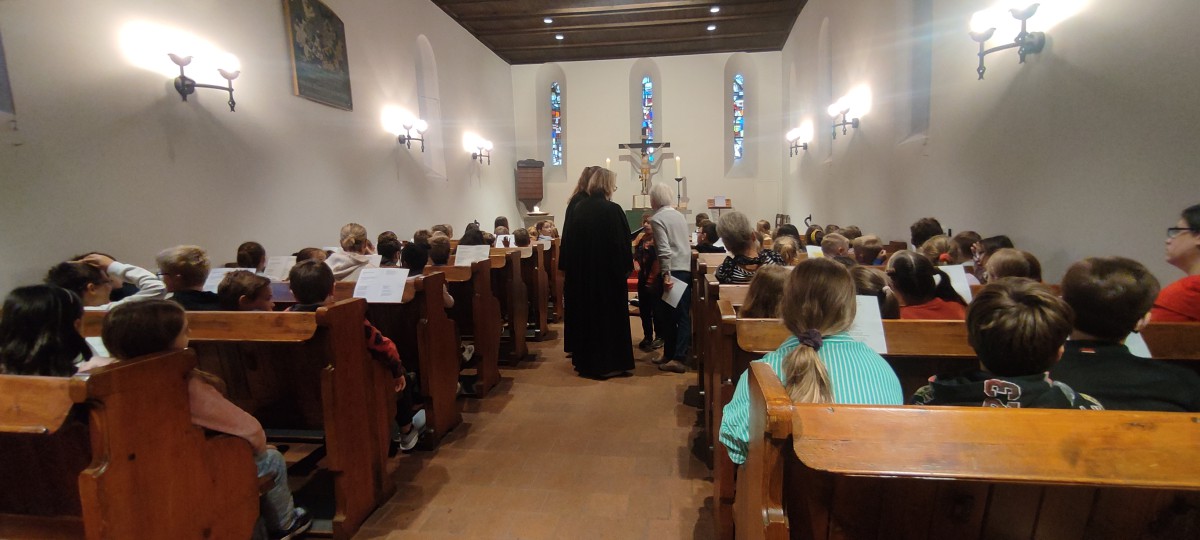 Für die Teilnehmenden am Religionsunterricht aller Klassen ging es zum Abschluss des Schuljahres 2024/25 zusammen mit Frau Kaecke in die Dorfkirche Schmargendorf. Es war ein schöner, gemeinsam gestalteter Gottesdienst und ein wunderbarer Abschluss für Frau Kaecke als langjährige Religionslehrerin und besonders engagierte Lehrkraft an unserer Alt-Schmargendorf-Grundschule.
