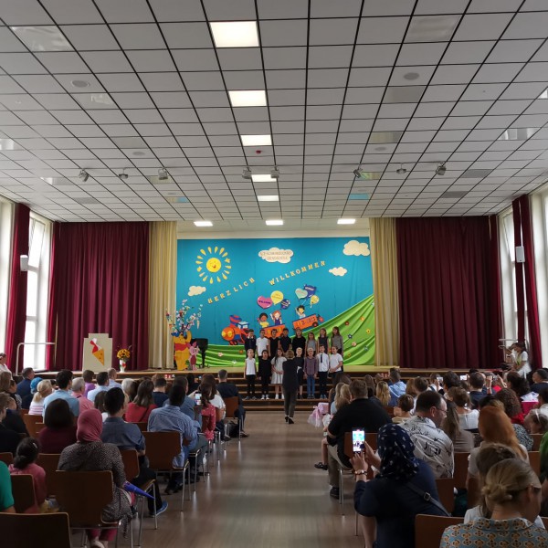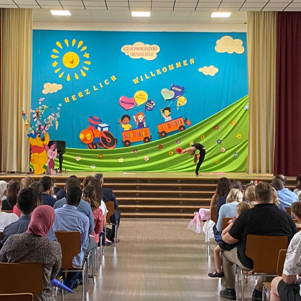 Das Wetter wollte uns am vergangenen Samstag eigentlich einen Strich durch die Rechnung machen – wie gut, dass wir die Einschulungsfeier in diesem Jahr ohnehin wieder in der wunderbar geschmückten Aula geplant hatten. Und so konnten die neuen Schüler*innen der ASG geleitet durch die herzlichen Worte der Schulleiterin Frau Sülflow gemeinsam mit Winnie the pooh und piglet, Alice im Wunderland und dem weißen Kaninchen, dem pädagogischen Personal und allen anwesenden Verwandten und Bekannten die zauberhaften Auftritte der Kinder bewundern: Die Gesangsdarbietungen der 3., 4. und 5. Klassen sowie die rhythmische Sportgymnastik von Varvara, die begleitet von Herrn Wienerts Klavierkünsten über die Bühne turnte, berührten die Herzen aller Anwesenden. Im Anschluss an das kurze Programm gingen die Erstklässler*innen dann mit stolzer Brust gemeinsam mit ihren Klassenlehrerinnen und Klassenerzieher*innen in ihre neuen Klassenräume und wurden hier auf ihre Zukunft als Schulkind eingeschworen. Die Eltern, die es sich in der Mensa bei Kaffee und Kuchen gutgehen ließen und nebenbei noch ein T-Shirt am Fördervereinsstand erwarben, waren mindestens genauso stolz wie die Kleinen selbst und so wurde im Anschluss an diesen besonderen Tag an einer der Fotostationen noch ein Erinnerungsbild geschossen: HURRA, endlich Schulkind.