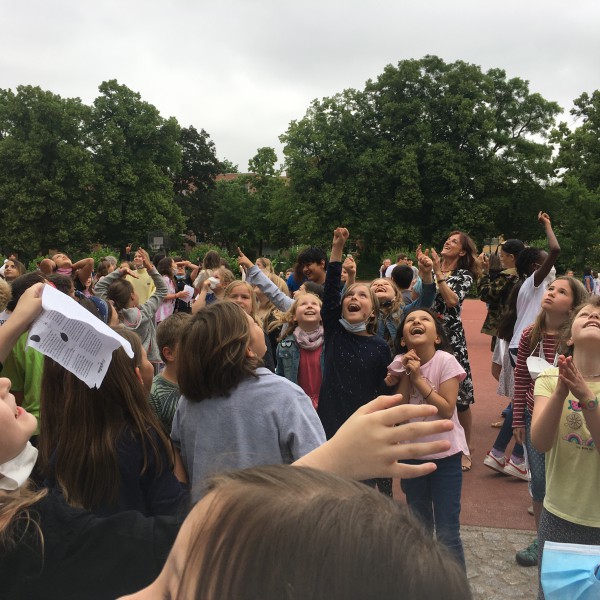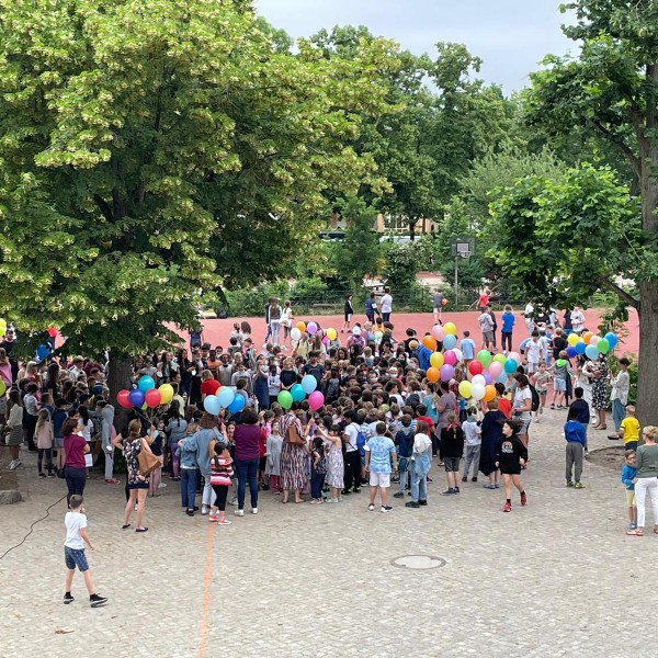 Ein langes, zähes und anstrengendes Schuljahr neigt sich dem Ende zu und die Sommerferien stehen unmittelbar bevor. Um unseren Schüler*innen zu zeigen, wie stolz wir auf sie sind, dass sie diese Zeit so toll gemeistert haben, hat sich der Förderverein etwas ganz Besonderes einfallen lassen. Die Entertainerin Paula PCay kam an die ASG und hat unseren Schüler*innen in den Vormittagsstunden auf dem Pausenhof eine super Show geboten: es wurde geklatscht, gelacht, gesungen und getanzt. Als ganz besonderes Highlight wurde dann beim letzten Gesangsbeitrag, dem Lied „99 Luftballons“ von Nena, eben solche fliegen gelassen. Diese ökologisch abbaubaren Ballons waren bestückt mit den Wünschen und Grüßen der Kinder. Der Abflug der Ballons Richtung Horizont und auch das Ende des Corona-Schuljahres wurden heute an der ASG mit großem Beifall gefeiert.