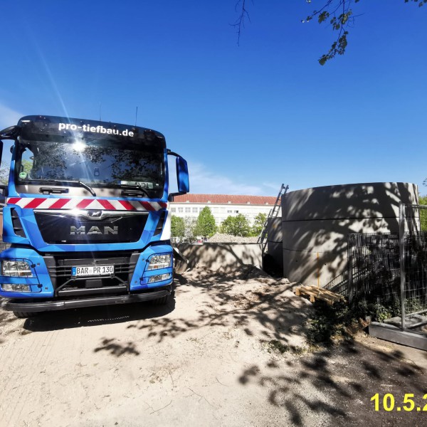 Mittwoch, 10. Mai 2023 - Die Gruben für die Sickerschächte werden ausgehoben, um das Regenwasser optimal aufzufangen.