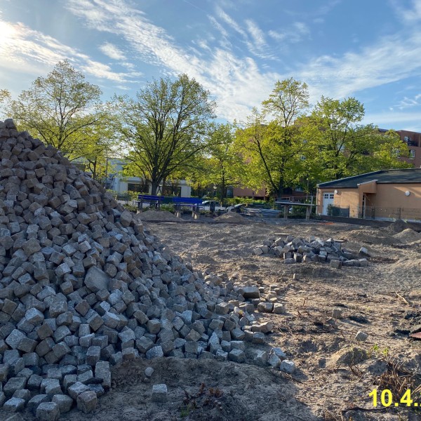 Montag, 10. April 2023 - Heute beginnen die Abrissarbeiten der Tartanbahn und die Entsiegelung der Steinflächen. Die Spielgeräte, Tischtennisplatten und Bänke werden entfernt und für einen eventuellen Neueinsatz aufbewahrt.