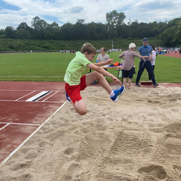 Es ist schon ein besonderer Gänsehautmoment, wenn die Kinder der einzelnen Klassenstufen der ASG am Vormittag ihre 800 oder 1000 Meter laufen und der Rest der Schule die Läufer*innen jubelnd von der Tribüne des Sportstadions Wilmersdorf aus anfeuert. Danach flogen die Bälle und die Körper der Kinder beim Weitsprung gleich doppelt so weit. Die 5. und 6.-Klässler*innen unterstützten die jüngeren Kinder wie immer als Riegenführer*innen bei den einzelnen Disziplinen oder die Lehrkräfte an den Sprung-, Wurf- und Laufanlagen. Der Förderverein seinerseits stand wieder mit frischem Obst und Wasser zur Verfügung und erstmals wurde auch vom Caterer unserer Schule auf der Anlage gegrillt, so dass die Kinder sich mit Würstchen versorgen konnten. Da der Himmel die meiste Zeit wolkenverhangen war, ließ es sich gut aushalten und die Jubelrufe wurden auch nicht leiser, als ganz zum Schluss die Großen noch einmal alles gaben bei ihren Ausdauerläufen. Wir bedanken uns bei dem Fachbereich Sport für dieses gelungenen Sportevent und freuen uns auf nächstes Jahr, wenn es wieder heißt: schneller, höher, weiter!