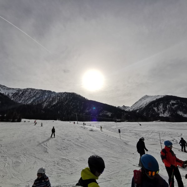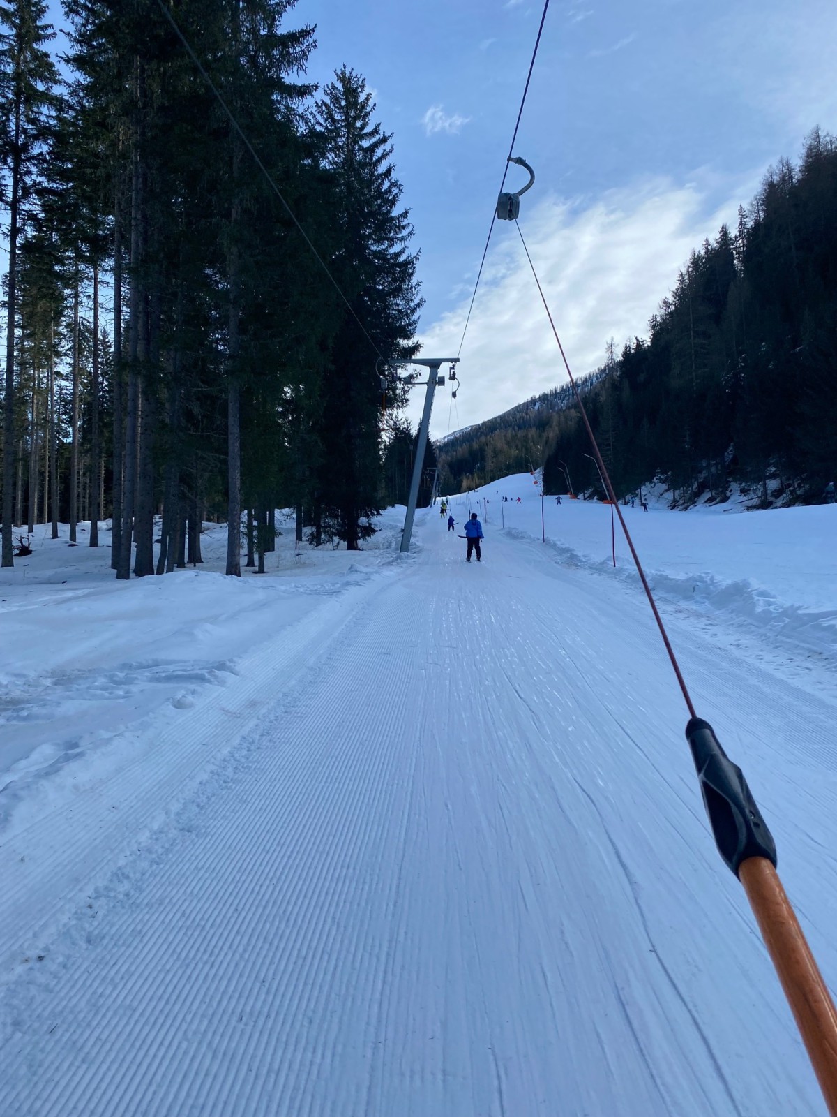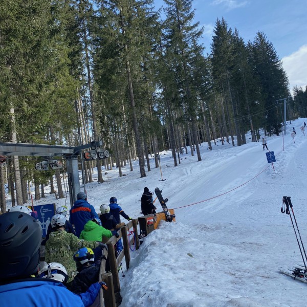 Nach einem kleinen Kinoevent gestern Abend, ging es heute Früh wieder bei schönstem Sonnenschein auf die Piste. Dabei wuchsen die Kinder erneut über sich hinaus, wenn das überhaupt möglich ist. Wahrscheinlich half der arabische Tanz zum Aufwärmen, das Blut in Wallungen zu bringen: Während die Skiprofis heute mit der Gondel die 2000 Meter knackten, fuhren auch einige der Anfänger das erste Mal den Ankerlift hoch zu zwei weiteren Pisten. Zunächst noch schüchtern, wuchs mit jeder Fahrt die Begeisterung und der Fahrspaß. Selbst die Kinder, die noch den Anfängerhang mit ihrer Anwesenheit beehrten, fuhren diesen alle selbständig hinunter. Somit können wir schon heute – am 2. Tag im Schnee – sagen: alle Kinder können ihre Pisten herunterfahren und die Lifte nach oben selbständig und sicher benutzen. Sensationell!