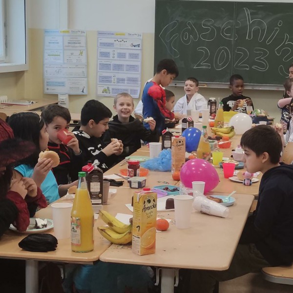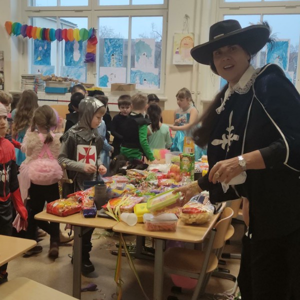 Am Faschingsdienstag strahlte die Sonne mit fröhlichen Kindergesichtern um die Wette. In unserer Alt-Schmargendorf-Grundschule breitete sich eine ausgelassene Stimmung auf allen Stockwerken aus. Viele Klassen starteten mit einem leckeren Frühstück gemeinsam in den Tag und begutachteten sich erst einmal in ihren Kostümen. Später tobte sich eine farbenfrohe Mischung aus Zauberern, Hexen, Superhelden, Fußballern, Agenten und vielen mehr in den Sporthallen mit Zombieball, Stopptanz und anderen kleinen Spielen aus. Einige zogen mit einer klassischen Polonaise durch das Schulgebäude. Nach einer extralangen Hofpause kehrten unsere Schüler:innen in die bunten Räume zurück, verputzten die verbliebenen Leckereien vom Buffet und ließen den unbeschwerten Tag mit Spielen oder Filmen ausklingen.
