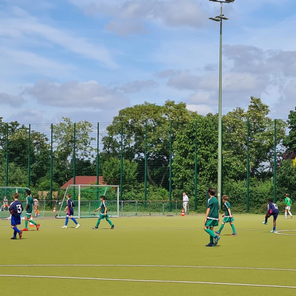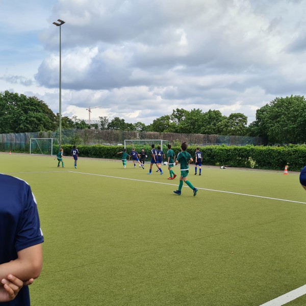 Die Chance auf den Einzug ins Berliner Halbfinale für Grundschulen war nun zum Greifen nahe. Dementsprechend nervös spielte unsere Mannschaft auch im 1. Spiel gegen die Müggelheimer Grundschule aus Köpenick. Leider musste man sich nach einem hart umkämpften Spiel, trotz klarer Feldüberlegenheit, am Ende mit einem ganz bitteren 0:1 geschlagen geben. Und das auch noch vor den Augen unserer Schulleitung, die extra zum Anfeuern vorbeigekommen war…