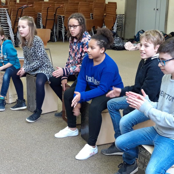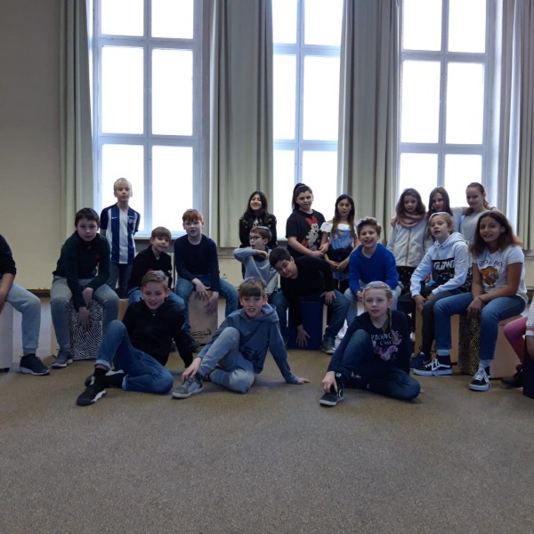 An zwei Tagen im März war zum wiederholten Male der professionelle Schlagzeuger Matthias Philipzen zu Gast, um mit zwölf Schulklassen der ASG im Rahmen des Musikunterrichtes auf dem aus Peru und Kuba stammenden Cajon (gesprochen Kachon / span.= Kiste, Karton) Musik zu machen. Koordination und Konzentration waren gefragt und wurden gefördert, um die Schlagzeug Grooves zu verschiedensten Pop- und Rocksongs mitspielen zu können. Auch wenn die Schüler nach einer Stunde ihre Finger spürten, es hat allen gefallen und viel Spaß gemacht!