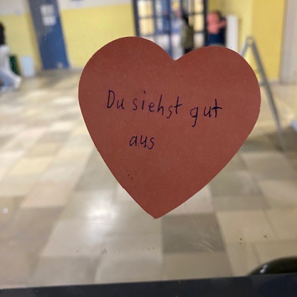 Heute am 14. Februar 2024 wurde in der ASG noch etwas mehr Liebe verteilt als sonst, denn es ist der Valentinstag. Kleine Blumen-, Schokoladen- oder Bastelgeschenke an die Kolleg*innen und Freund*innen brachten schon die Herzen der Auserwählten zum Schmelzen, aber als die Klasse 6a rund um Ihre Klassenlehrerin Frau Ullmann dann noch liebe kleine Botschaften im ganzen Schulgebäude aufhängten, war es um die Gemeinschaft unserer Schule geschehen. Viele lächelnde und tuschelnde Kinder rangen sich um die herzlichen Worte und jeder hätte sich so gerne einen der kleinen Aufkleber eingesteckt. Danke für diese Aufmerksamkeiten, die uns alle den Tag versüßt haben.