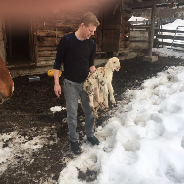 Wie auf einem Bild zu sehen ist, wurde heute Nacht ein Lämmchen geboren. Die Mädchen waren hiervon besonders begeistert.