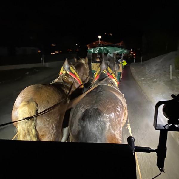 ging es am gestrigen Abend durch Niederau. Drei Pferdekutschen nahmen die Kinder und Erwachsenen mit auf eine nächtliche Fahrt bis hin zu einem Bauernhof in der Nähe. Hier wurden wir von der herzlichen Wirtin mit leckerem Kinderpunsch versorgt, bevor es anschließend in den hauseigenen Stall ging, in dem die Kinder auf Tuchfühlung mit Kuh, Pferd und Kaninchen gehen konnten. Ein einmaliges Erlebnis für viele unserer Stadtkinder, die doch eher selten Kühe zu Gesicht bekommen und wahrscheinlich noch seltener eine solche angefasst haben. Heute hieß es dann ein letztes Mal auf die Piste und das auch schon sehr selbständig. Im Schuss ging es für alle den Hang hinunter zum Lift und im Anschluss daran wurden dann alle Minuten bis zum Mittag voll ausgekostet und eine Runde nach der anderen gedreht. Alle Kinder können nun mit Fug und Recht behaupten: Wir können Ski fahren! Diese Tatsache wird am heutigen Abend offiziell bei einer Feierlichkeit gekürt, bei der auch die Tombola für die Zimmerkontrolle stattfinden wird. Morgen geht es dann mit einem lachenden und einem weinenden Auge wieder nach Berlin.