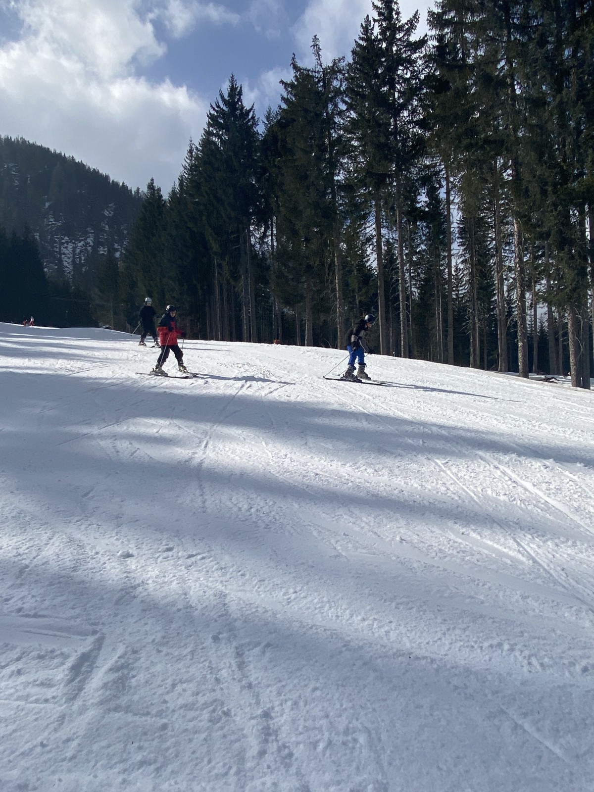 Am heutigen Freitag ging es ein letztes Mal auf die Piste und auch ein letztes Mal auf die Hütte zum Essen. Die ganze Woche über hatten wir unfassbares Glück mit dem Wetter und die Kinder haben innerhalb dieser wenigen Tage so großartige Fortschritte beim Skifahren gemacht. Da war es nicht verwunderlich, dass die kleinen Pistenraudis heute gar nicht aufhören wollten zu fahren. Aber da noch die Koffer gepackt werden müssen und auch das ein oder andere Zimmer grundgereinigt werden muss, wurden pünktlich um 14 Uhr die Skier abgegeben und der Piste Good bye gesagt. Mit dem Bus ging es zurück zum Hotel und nun heißt es: noch einmal schlafen und dann „Berlin – wir kommen!“