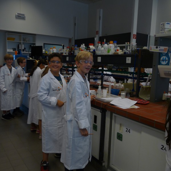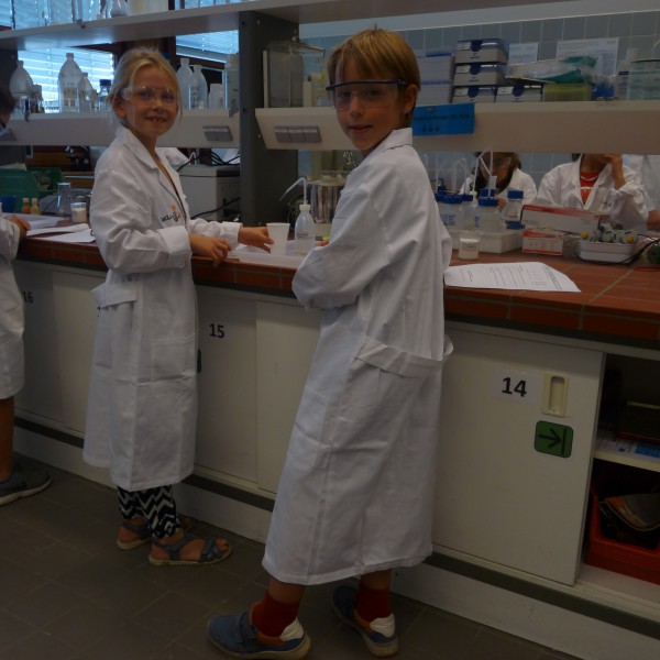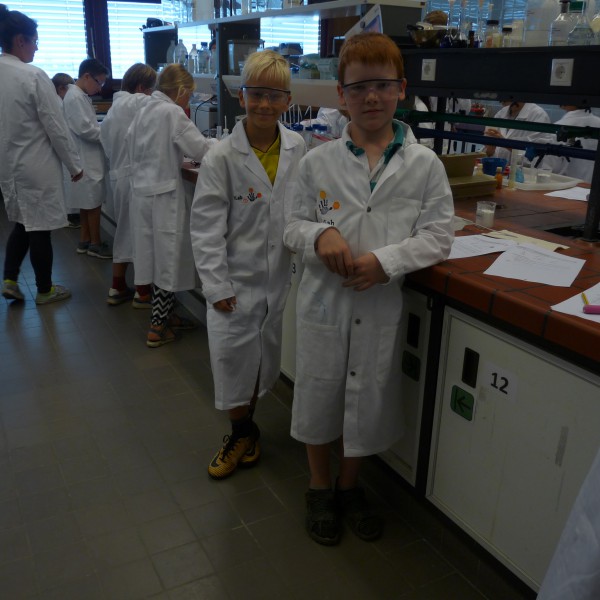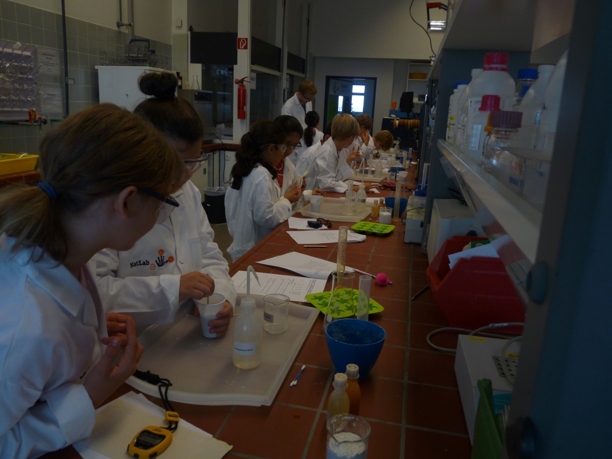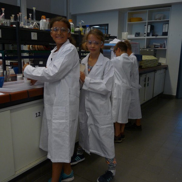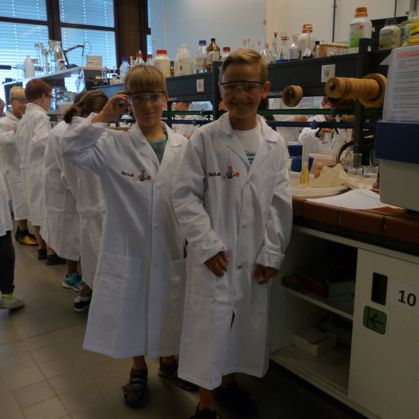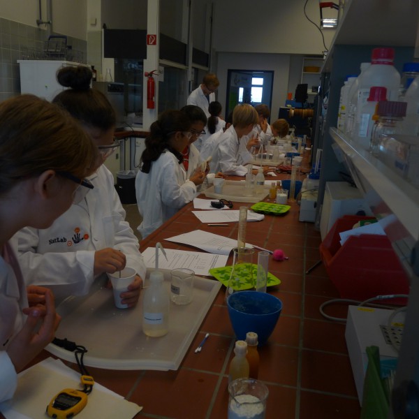 KinderUni - 20. September 2018: Die Klasse 4b nahm an der KinderUni der FU Berlin teil und experimentierte im Chemie-Labor zur Frage: “Wie Gips farbig wird”.