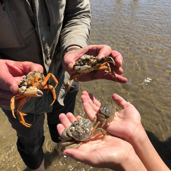 Am Montag sind wir zum ersten Mal zum Strand gelaufen. Es hat lange gedauert, aber es hat sich gelohnt. Wir haben so viele Muscheln gesammelt, auch pinkfarbene und blaue. Und wir haben auch Krabben gefunden.