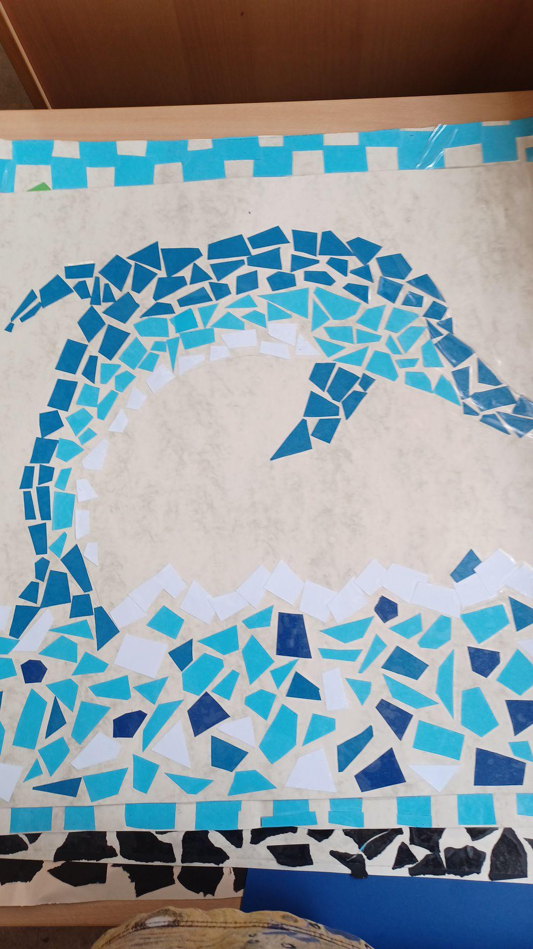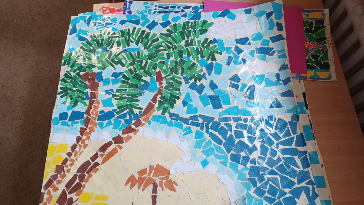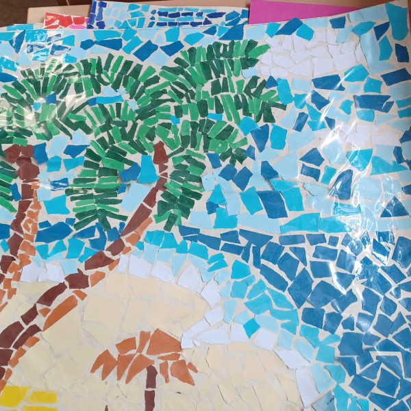 Gemeinsam mit anderen Schülerinnen und Schülern aus dem Bezirk entstanden im Kunstraum der Alt-Schmargendorf-Grundschule beeindruckende und originelle Werke. Dabei konnten die kunstaffinen Kids neue Gestaltungstechniken ausprobieren. Zunächst wurden aus Papier und bunten Papierschnipseln Mosaike erstellt. In einem nächsten Schritt würde ganz nach antiker Tradition aus Fliesensplitter auf Platten Mosaike zusammengestellt.