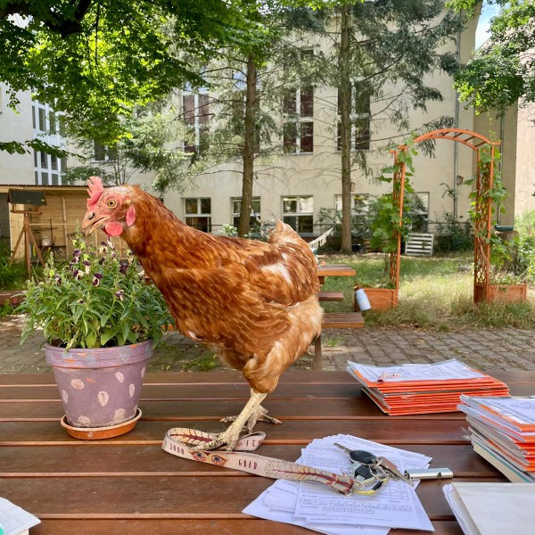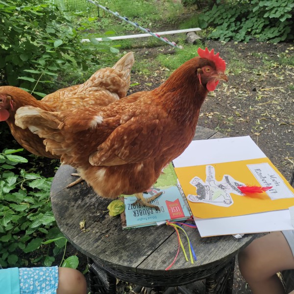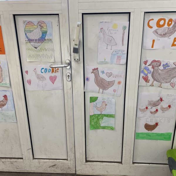 Nicht immer sieht das Leben ein vollkommenes Happy End vor und so müssen wir in dieser Woche leider die traurige Nachricht vom Tod unserer Hühner verkünden. In der Nacht zum Dienstag hat der Marder es geschafft, sich Zugang zum Außengehege zu verschaffen. Dabei zogen Cookie, Schmaggi, Feli und Maroni einfach nur die kühle Nachtluft dem kleinen Holzstall vor und das wurde ihnen leider zum Verhängnis. Dennoch wollen wir auf das letzte Jahr voller Freude blicken, denn die eigentlich schon für den Schlachter vorgesehenen Hennen hatten es dank der fürsorglichen Pflege und Streicheleinheiten durch die Kinder, die Erzieher*innen, die Mensamitarbeiter*innen, den Hausmeister und die Lehrkräfte richtig gut. Selbst die Tierärztin war begeistert von der tollen Entwicklung, die die vier durchgemacht haben. Und so wollen wir unsere ersten ASG-Hühner in liebevoller Erinnerung behalten. Sie bleiben unvergesslich und leben in unseren Herzen fort.