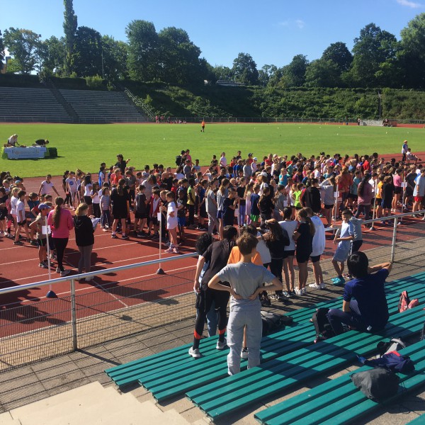 In diesem Jahr konnten endlich wieder unsere Bundesjugendspiele stattfinden. Wie es sich für eine sportbetonte Schule gehört, trafen sich am 21. Juni 2022 die Klassen 1 bis 6 im Stadion Wilmersdorf, um sich im Rennen, Werfen und Weitsprung zu messen. Hierbei war das Wetter uns wieder sehr wohl gesonnen und neben den SchülerInnen lief vor allem der Schweiß. Da traf es sich gut, dass der Förderverein sich um die Versorgung der Kinder mit frischem Obst (Spende vom EDEKA Korkmaz) gekümmert hat. Denn dank saftiger Äpfel, Trauben, Gurken und Bananen flogen die Bälle weit über die Rasenfläche, der Sand wirbelte nur so unter den gewaltigen Sprüngen der Kinder und die ZuschauerInnen auf den Tribünen hatten Mühe die Gesichter der Kinder auszumachen, so flott wurden die Runden gelaufen. Wir bedanken uns ganz herzlich bei den 6. Klassen für ihre Unterstützung bei den Wettkämpfen der Jüngeren, sowie beim Förderverein für die Organisation der Obstspende und vor allem bei Sport-Fachbereich für diese gelungenen Spiele.
