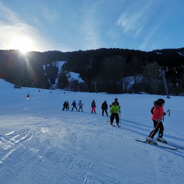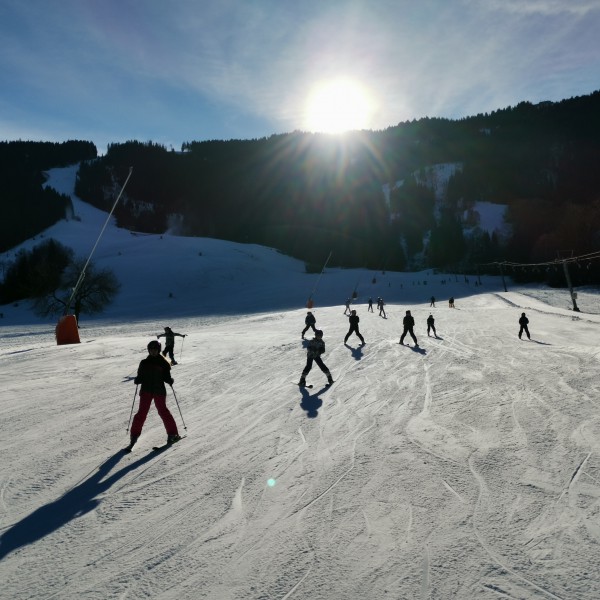 Bevor am heutigen Abend weitere Kalorien in der Disko abgetanzt werden, hieß es für die Schüler*innen der ASG erst einmal Skifahren. Wieder war uns das Wetter wohlgesonnen und zudem konnten heute auch schon einige Anfängergruppen mit der Gondelbahn den Gipfel erklimmen. Die rote Piste wurde dabei ebenso gut gemeistert wie die ersten Fahrten mit dem Ankerlift.
