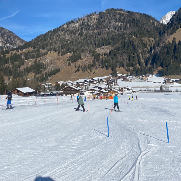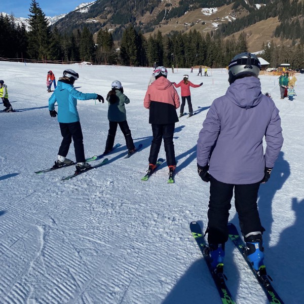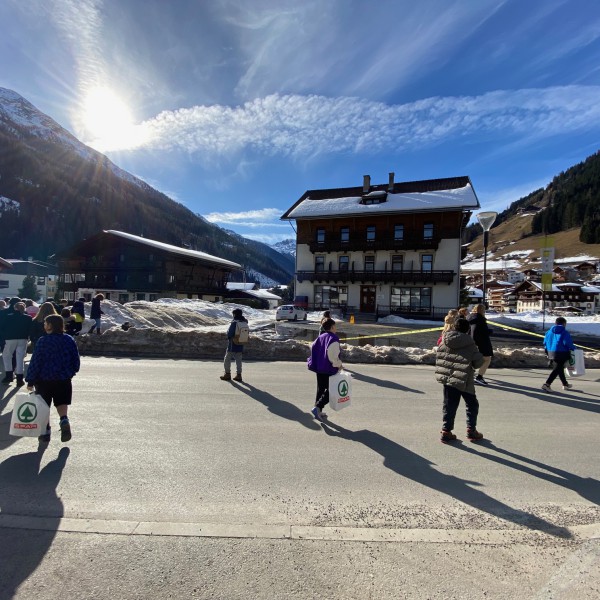 Ein bisschen neidisch guckten unsere Skischüler*innen heute schon, als sie auf der Piste viele verkleidete Fahrer*innen entdeckten. Da purzelte man schon mal aus Versehen aus dem Lift oder über die eigenen Skier, wenn man der Schar Hühner auf Skiern hinterherguckte, die im Affenzahn den Berg runterraste. Wie gut war es deshalb, dass wir heute nur einen halben Tag auf der Piste unterwegs waren. Der Nachmittag wurde dem Leerräumen des Spar-Supermarktes gegenüber des Hotels gewidmet. Von Postkarten, über Süßigkeiten und Softdrinks bis hin zu Eiscreme und Zahnbürsten – da war alles dabei. Wir sind gespannt wie sich der Zuckerpegel auf das heutige Abendprogramm auswirkt – lustig wird es in jedem Fall J
