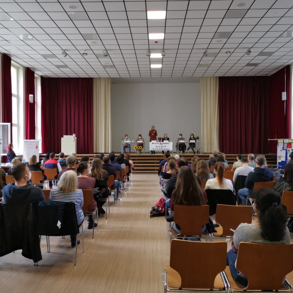 Am heuteigen stürmischen Samstag versammelten sich zahlreiche Pädagog*innen in der Aula der ASG, um interessierten Eltern einen Einblick in das Schulleben an unserer Schule zu geben. Dabei gab es zunächst verschiedene Impulsvorträge der anwesenden Lehrer*innen und Erzieher*innen, sowie durch die Schulleitung, bevor anschließend alle Fragen der gekommenen Gäste eine interessante und aufschlussreiche Frage-Antwort-Runde einleiteten. Die Gespräche in großer Runde wurden dann in einem kleinen Museumsrundgang an den informativen Stellwänden und Materialtischen weitergeführt. Wer nach diesem Input noch Zeit und Interesse hatte, konnte sich zudem von den Pädagog*innen durch die Schule führen lassen und dabei Blicke in all die Räume werfen, in denen ab Montag wieder über 500 Kinder trippeln und trappeln. Es war ein gelungener und interessanter Vormittag an der ASG, dem auch die gelegentlichen Schauer nichts anhaben konnten. Nächstes Jahr können wir dann hoffentlich auch wieder die zukünftigen Schüler*innen begrüßen, die aufgrund von Corona leider auch dieses Jahr der Veranstaltung fernbleiben mussten.