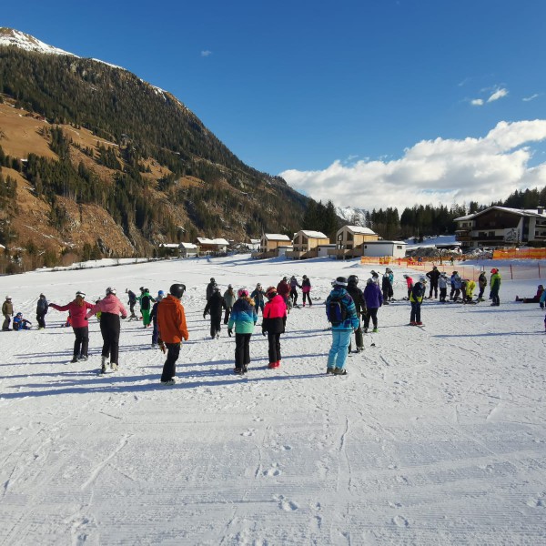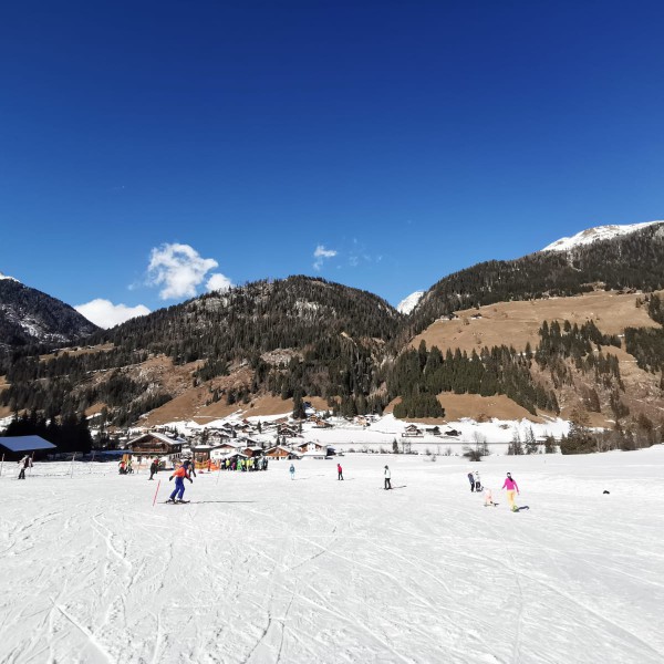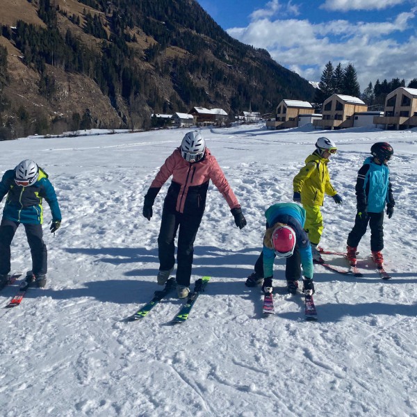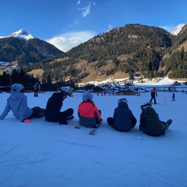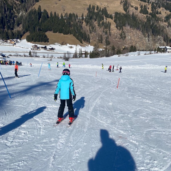 Der Tag begann um 7 Uhr nach einer etwas längeren Schlafphase als am Vortag und dann ging alles ganz schnell: Frühstück, Skipässe, Anziehen, Lunchpaket packen und dann ab zum Skibus. Die Sonne strahlte den ganzen Tag und mit den Kindern um die Wette, denn waren diese langen Dinger am Anfang des Tages noch ungewohntes Terrain, so fuhren doch am Ende des Tages alle Kinder auf ihren Skiern den Anfängerhang in kleinen Kurven nach unten. Erstaunlich und begeisternd wie schnell auch das allerletzte Kind in so kurzer Zeit die ersten Kurven in den Schnee zaubert. Mit diesen wunderbaren Bedingungen und der Begeisterung der Kinder im Gepäck, freuen wir uns schon sehr auf die kommenden Tage!