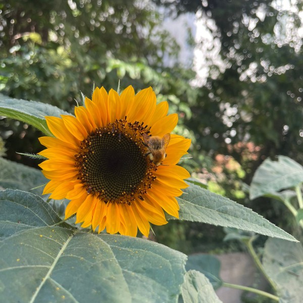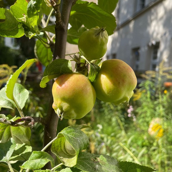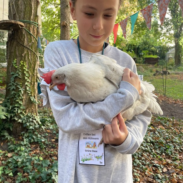 Wenn man ganz leise ist, kann man hier und da ein glücklich seufzendes „Mhm…“ hören, wenn man durch die Grüne Oase schlendert. Denn in keinem Jahr zuvor, konnte man so viel entdecken, riechen und schmecken, wie in diesem Jahr. Auch wenn die Ernte noch spärlich ausfiel, ist die Vielfalt doch zu erahnen. Neben Erdbeeren, Himbeeren, reichlich Tomaten, Gurken, Möhren, Äpfeln, Radieschen, Kürbissen, Sonnenblumenkernen, Wunderlauch und Kräutern wie Minze, Oregano, Thymian, Waldmeister und Knoblauchgras, die man riechen und schmecken konnte, gab es auch viele bunte Blüten zu beobachten. Im Frühjahr blühten in unserer Oase über 100 Frühblüher in vielen Farben. In den Sommermonaten konnte man dann viele kleine Blüten, wie Lavendel, Klee, Natternkopf und Brennnessel, für Insekten entdecken und nun am Ende des Sommers waren es noch immer große, gelbe Blüten von Kürbis und Gurke. Dank der vielen Blüten konnten Hummeln, Bienen, Marienkäfer und Schmetterlinge an den Blüten und Asseln, Ameisen, Würmer, Spinnen, Schnecken und Käfer am und im Boden entdeckt werden. Auch Meisen, Spatzen, Eichhörnchen und Mäuse fühlen sich bei uns wohl. Die große Vielfalt an Pflanzen und Tieren erfordert viel Pflege und so ist es schön, dass Kinder aller Klassen nun die Möglichkeit haben, in der Aktiven Pause mitzumachen und lernen, wie ein Garten und dessen Bewohner gepflegt und behütet werden. Bei so viel Unterstützung hoffen wir, im nächsten Jahr ein großes Erntedankfest feiern zu können.