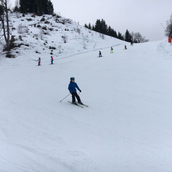 Am Vormittag hatten wir den ersten Regen, der aber weder der Piste, noch dem Spaß am Skifahren Abbruch getan hat. Allen Kindern geht es sehr gut und seit heute können wir auch sagen, dass alle Ski fahren können. Alle haben gelernt mit dem Lift umzugehen und den Haushang hinabzufahren. Kinder und SkilehrerInnen sind sehr zufrieden.