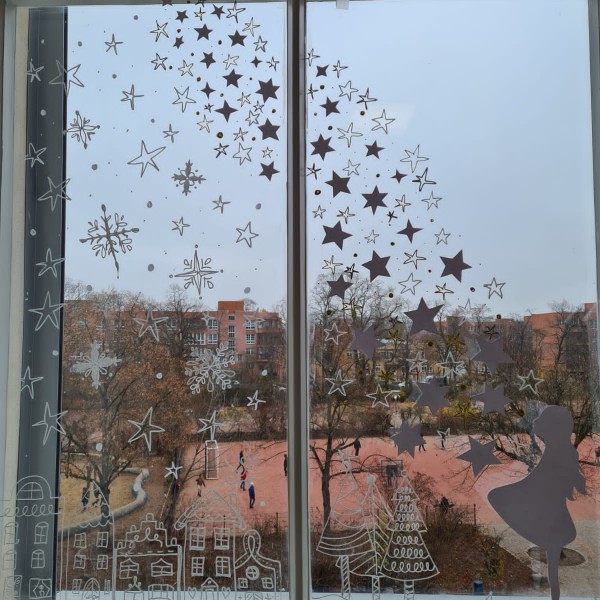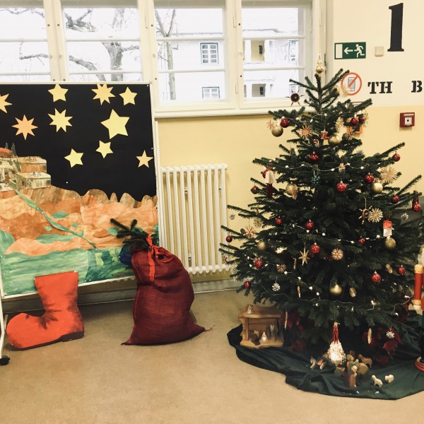 Auch wenn es dort draußen auf den grauen Straßen Berlins in diesem Jahr alles anders und weniger weihnachtlich scheint, bei uns in der Schule strahlen Lichter, Sterne und vor allem Gesichter um die Wette. Überall in der Schule finden sich festlich geschmückte Fenster, Ecken und Wände. Schon im Foyer werden die Schüler*innen von dem liebevoll geschmückten Weihnachtsbaum empfangen, der umgeben von Holzkrippe und kindsgroßem Nussknacker, im hellen Licht erstrahlt und so die meisten grauen Gedanken schwinden lässt. Wenn dann auch noch am vergangenen Montag Früh prall gefüllte Säcke in den einzelnen Klassen von einem Besuch des Nikolaus´ zeugen, so sind es letztlich die glänzenden Augen aller an der ASG, die uns Weihnachten mit seiner Nächstenliebe und Warmherzigkeit ganz nah bringen.