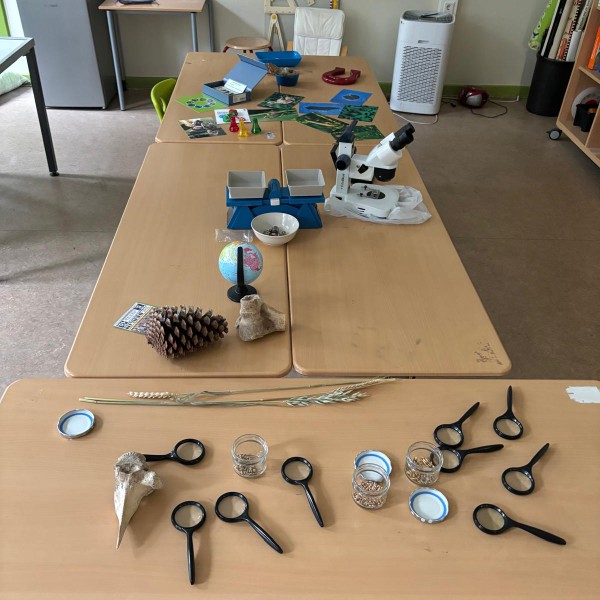 Beim diesjährigen "Tag der offen Tür" gingen die Touren quer durch die Schulgebäude: los ging es bei unseren Verwaltungsräumen und geöffneten Klassenzimmern, hinein in den Nawi-Raum mit Experimentierstation, zu den Hühnern in der Grünen Oase oder zu den neuen Kunst- und Kreativräumen mit Mitmachstationen. In der kleinen Halle konnten sich unsere kleinen Gäste durch einen Bewegungsparcour toben. Weiter ging es mit vielen Eindrücken aus dem Hauptgebäude über den Schulhof in und durchs MEB (Mobiler Ergänzungsbau). Die Tour endete sportlich in der großen Halle mit Kletterparcour und Fußballstation.