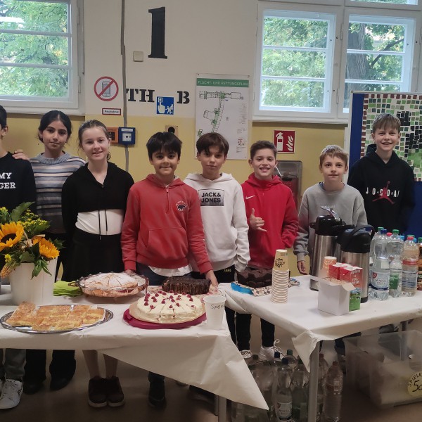 Nach vielen Schritten durch die Alt-Schmargendorf-Grundschule konnten sich alle im Foyer bei Getränken und leckeren Kuchen stärken.