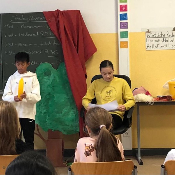 Und nicht nur die Erwachsenen lasen den Kindern vor. Erstmalig bereiteten einige Sechstklässler*innen eine kuschelige Leseatmosphäre vor und luden Kinder der zweiten Klasse ein, ihnen ganz individuell vorzulesen. Ein weiteres Highlight war sicherlich auch das Vorlesetheater der Leseprofis. Mit „Ein Esel ist ein Zebra ohne Streifen“ wurde den Zeitklässler*innen allerlei Unsinn aufgetischt.