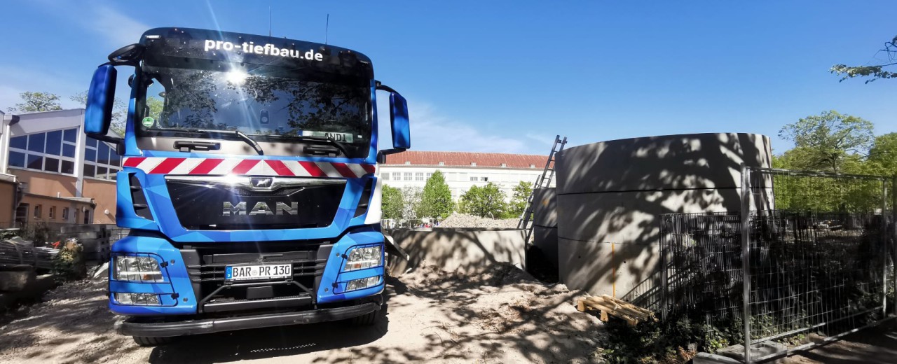 Die Gruben für die Sickerschächte werden ausgehoben, um das Regenwasser optimal aufzufangen.