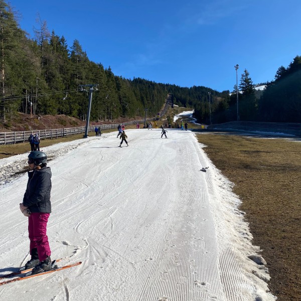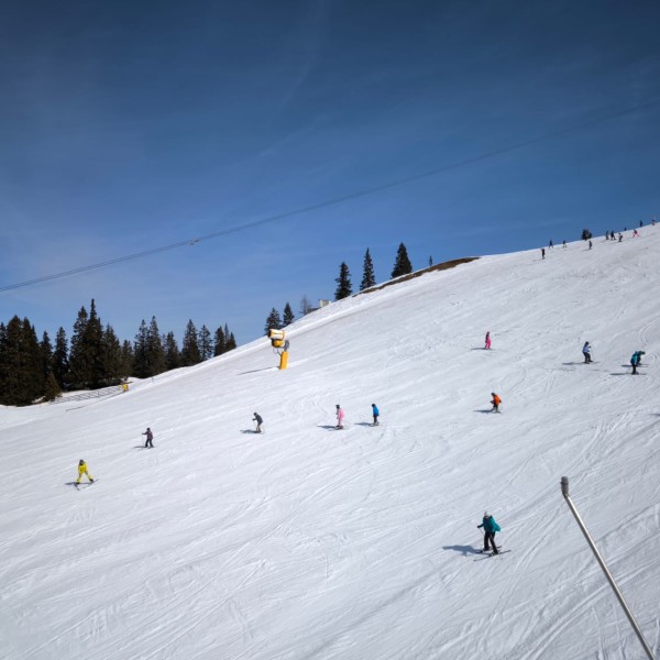 Mittwoch - Tag 4 und der Tag der Tage in Camp Ski-ASG. Die Sonne und die Gesichter der Kinder strahlten heute um die Wette, als die gesammelte Mannschaft nach einer kleinen Einfahrrunde auf dem Anfängerhang mit der Standseilbahn auf den Berg fuhr. Heute sind alle Kinder auf den oberen Pisten Ski gefahren und das sowohl in Schlange als auch in Kleingruppen. Auch nach dem Mittagessen - es gab Kaiserschmarrn für alle - wollten nur die wenigsten wieder runter und so wurden die Sonne und die Pisten bis zum letzten ausgenutzt. Heute war ein sehr erfolgreicher Tag mit einer sehr harmonischen Skigruppe, tollem Wetter und unglaublich stolzen Kindergesichtern.